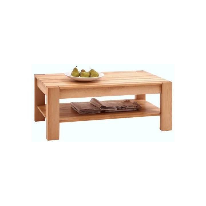 The wide and stable tabletop offers a convenient space for everyday use, while the shelf underneath allows you to store small accessories, books, or decorative items within easy reach. The table legs, also made from solid beech, provide excellent stability, and the uniform color scheme maintains a cohesive, natural appearance. The simple and balanced form of the table makes it an ideal addition to a living room or lounge area, where it can serve as the central element of a relaxation zone alongside a sofa or armchair.