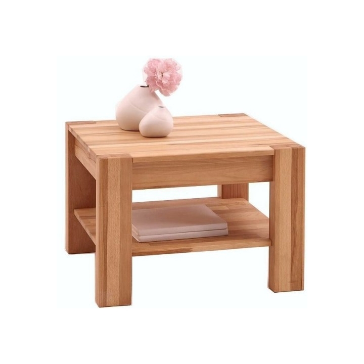 The table’s structure consists of a sturdy square tabletop and a practical lower shelf designed for storing books, magazines, or small accessories. Its stable, solid legs made from the same wood ensure long-lasting durability and reliable support. The natural beech finish makes the table easy to combine with both lighter and darker furnishings, allowing you to create a coherent and welcoming arrangement.
