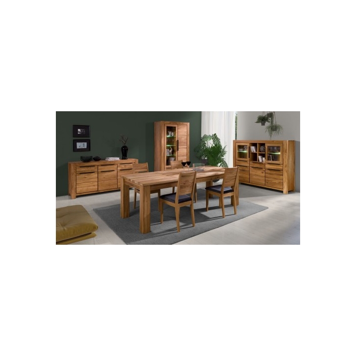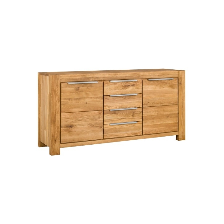 Each element is characterized by its own individual grain pattern, ensuring that no two sideboards are identical. The oiled finish further brings out this unique texture. The piece is designed to function in a variety of interiors—it can serve as part of a living room, dining room, bedroom, or dayroom arrangement while providing ample storage for everyday items.