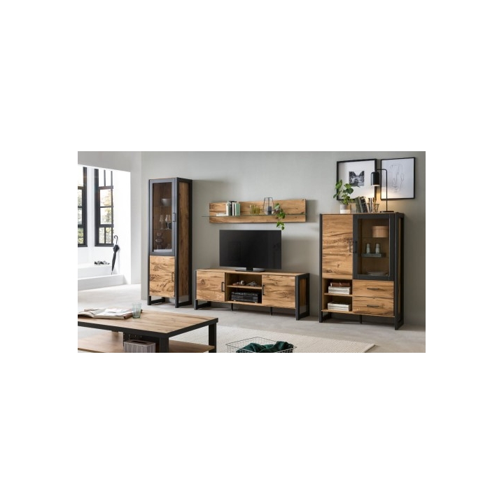 The combination of warm oak veneer and industrial details makes this table an excellent fit for modern interiors, both in spacious living rooms and more intimate lounge areas. It can serve as a standalone design feature or complement a larger furniture set.