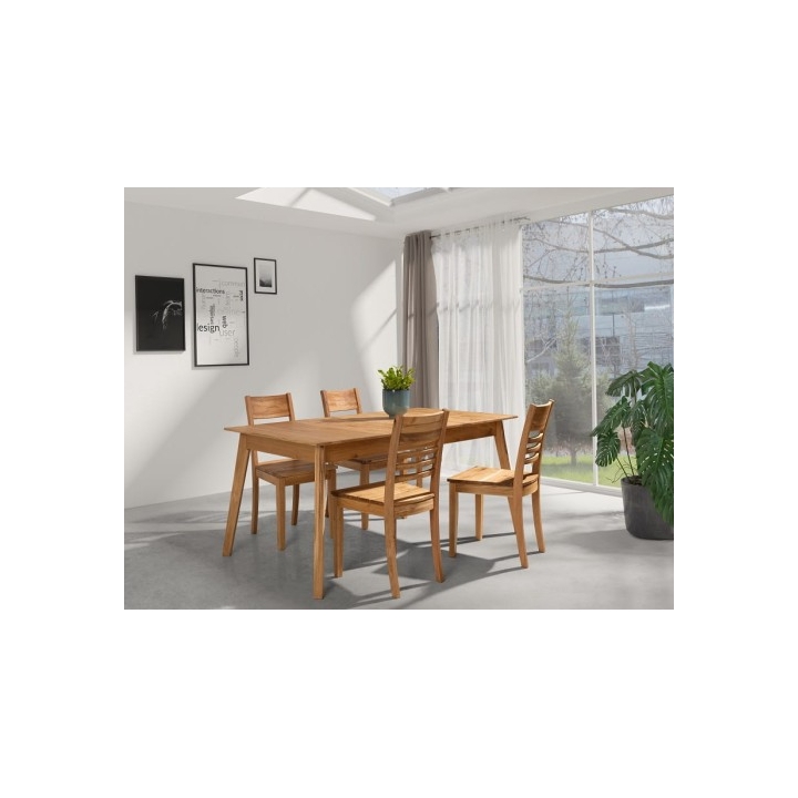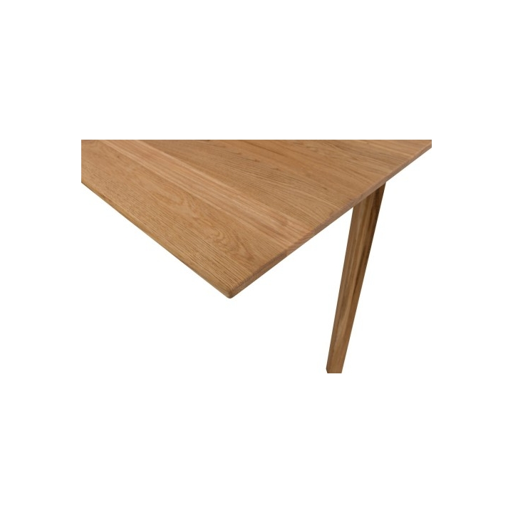 The rectangular tabletop in its standard size creates a comfortable space for everyday meals, and thanks to two extension leaves, the table can be expanded up to 260 cm, providing extra room for larger gatherings and festive occasions. The light oak shade emphasises the genuine, natural look of the material and brings a calm, inviting atmosphere to the interior.