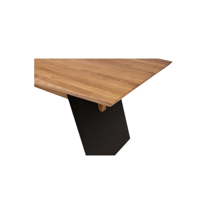 The contrast between the light oak top and the dark base makes the table a strong design element that fits easily into both loft-style spaces and more subdued interiors. With its generous dimensions, the Modena 200x100 provides a spacious setting ideal for larger gatherings.