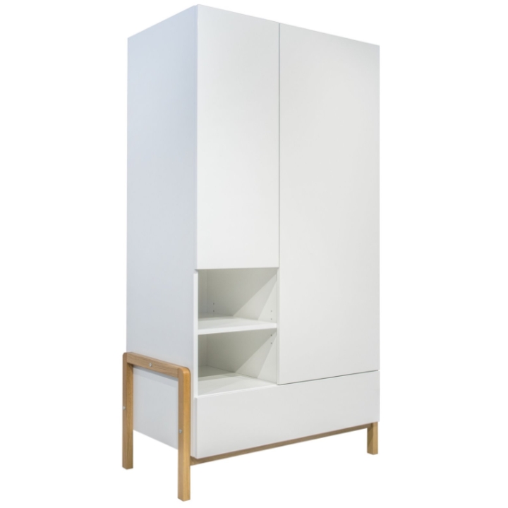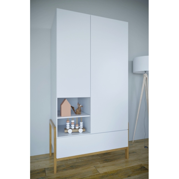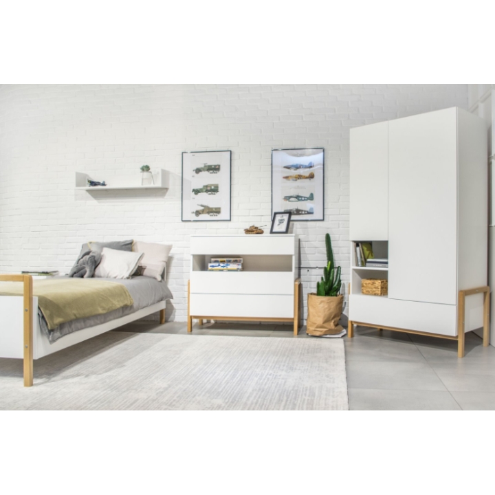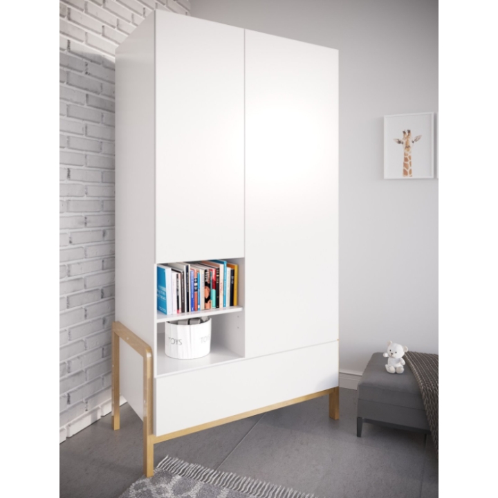 The contrast of natural oak accents with the clean white body creates a timeless look that can easily adapt to a child’s changing tastes over the years. Thanks to the use of thick furniture boards, the wardrobe offers high stability and long-lasting durability.
