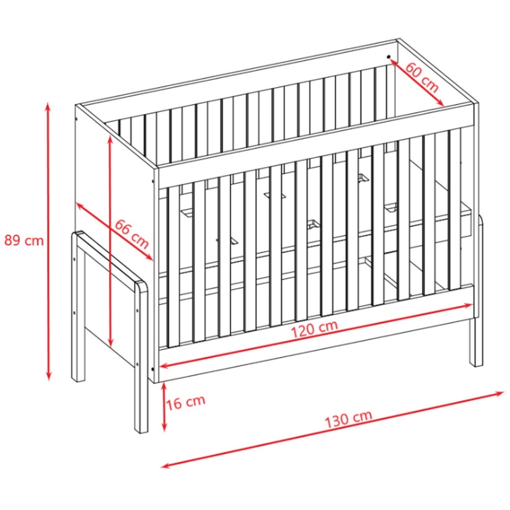 The Victor baby cot by Kocot Kids is designed to provide a safe, stable, and comfortable sleeping environment from the very first days of your child’s life. The cot measures 130 cm in width, 89 cm in height, and 66 cm in depth, offering a standard 120x60 cm sleeping surface.