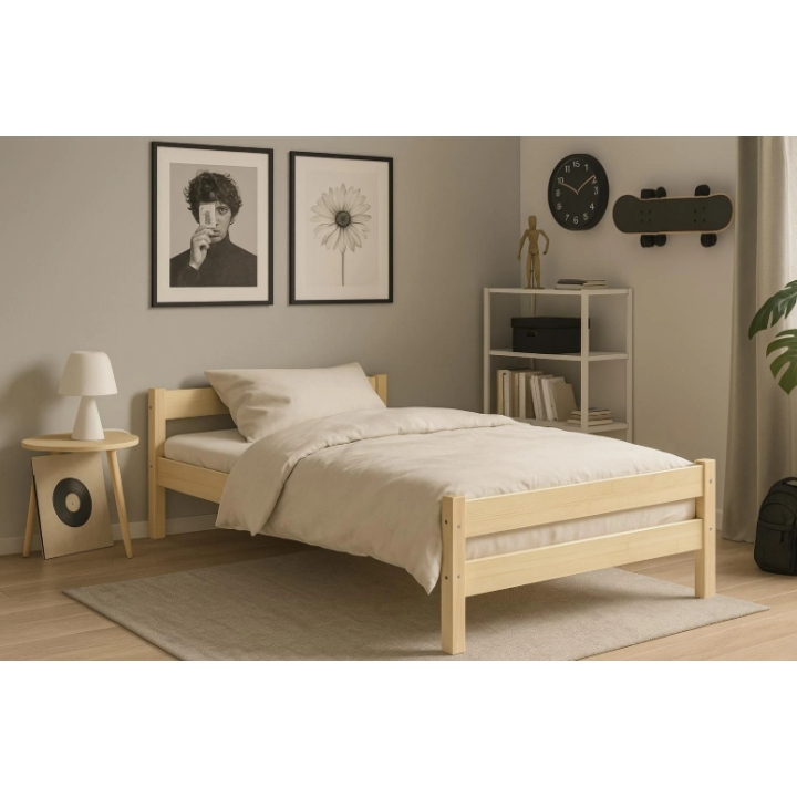 The Aleks bed is a minimalist piece measuring 87 cm in width, 169 cm in depth, and 53 cm in height, offering a comfortable 160x80 cm sleeping surface. Designed for both children’s and teenagers’ rooms, its simple, universal form fits perfectly into modern, Scandinavian, and classic interiors, serving as a durable base for everyday rest.