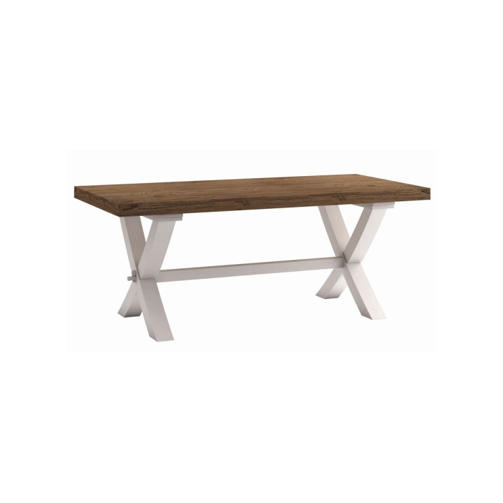 The Provance table is an elegant and stylish piece of furniture made entirely of solid wood, characterised by crossed legs that give it a unique look. Measuring 199 cm in length and 95 cm in width, the table is unfolded, highlighting its solid construction. Made of wood, the table provides strength, a natural look and longevity. Its aged white colour adds to its charm and introduces a rustic atmosphere, fitting perfectly with the Provençal style, reminiscent of the French countryside. The Provance table will work well in both the dining room and kitchen, being the focal point of any interior design.