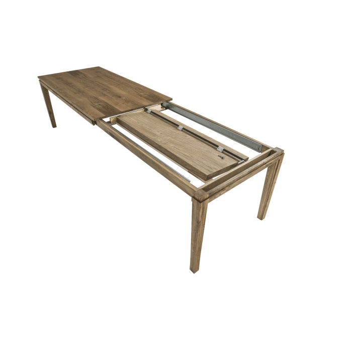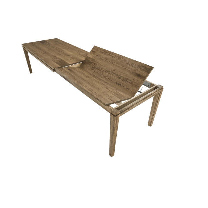 The Granada GRA.070.11 table combines classic and modern, becoming a perfect choice for anyone who appreciates elegance and functionality. The characteristic oak veneers, sourced from old logs, give the table a deep and authentic look, emphasised by the unique features of the natural wood. Subtle beading adds a contemporary touch. What's more, the Granada table GRA.070.11 , originally 180 cm in length, offers the option to butterfly extend to an impressive 300 cm, (inset hidden under the top) making it ideal for both everyday meals and larger gatherings with family or friends.