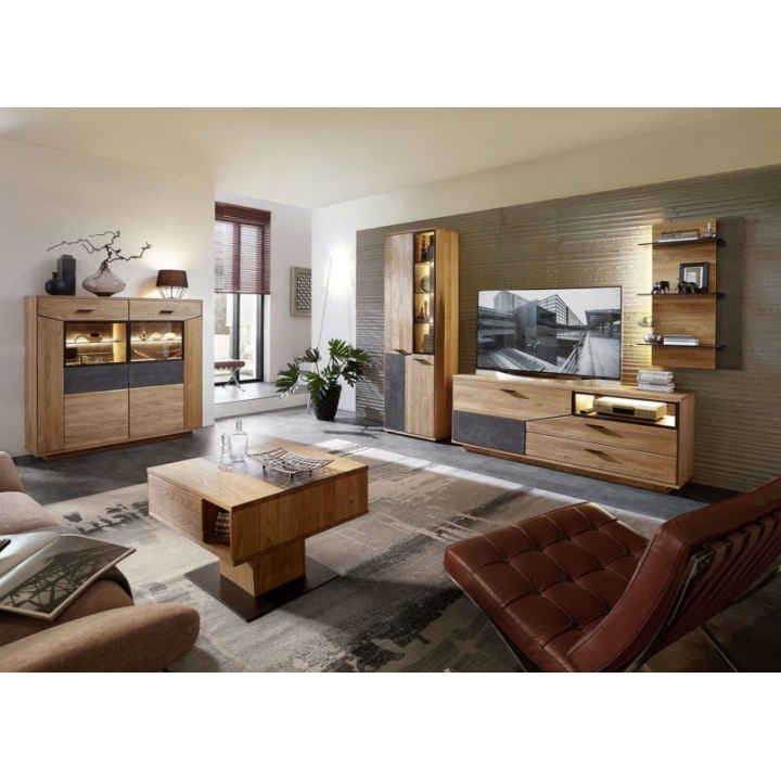 The contrast between the metal base, ceramic décor and natural wood gives the bench a unique but still natural look. The oak veneer combined with solid wood elements guarantees durability and strength. The oiled surface reinforces the protection against damage and emphasises the natural structure of the material. Careful details ensure high quality workmanship.