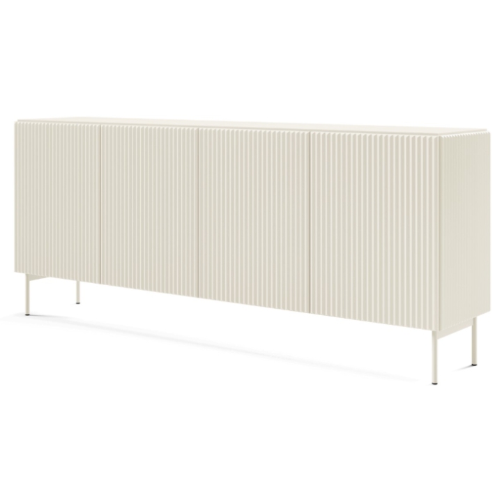 The Laski Meble Muti 195 4D Sideboard, measuring 81 cm in height, 195 cm in width, and 40 cm in depth, has been designed to blend modern character with subtle form. The fluted fronts and sides create a textured, three-dimensional surface, enhancing the furniture’s visual appeal.