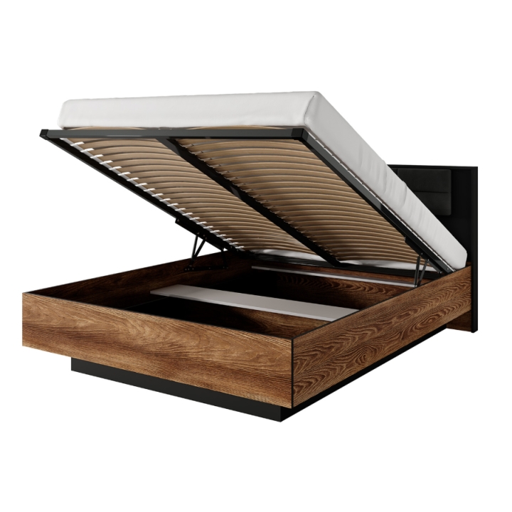 Crafted from high-quality furniture board, the bed ensures durability and stability during everyday use. Thanks to its comfortable headboard, balanced proportions, and timeless design, this model combines style and practicality, making it an excellent centerpiece for any bedroom. It offers both a comfortable sleeping space and functional storage, adding harmony and contemporary charm to the interior.