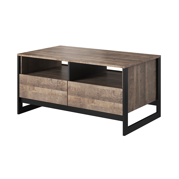 The Arden Coffee Table by Laski Meble combines the warm tone of Sand Grande Oak with striking dark metal details, creating a modern and slightly industrial look. The rectangular top measuring 109 cm wide and 61 cm deep offers plenty of space for serving drinks or placing books, while its 53 cm height ensures comfortable use in any living room.