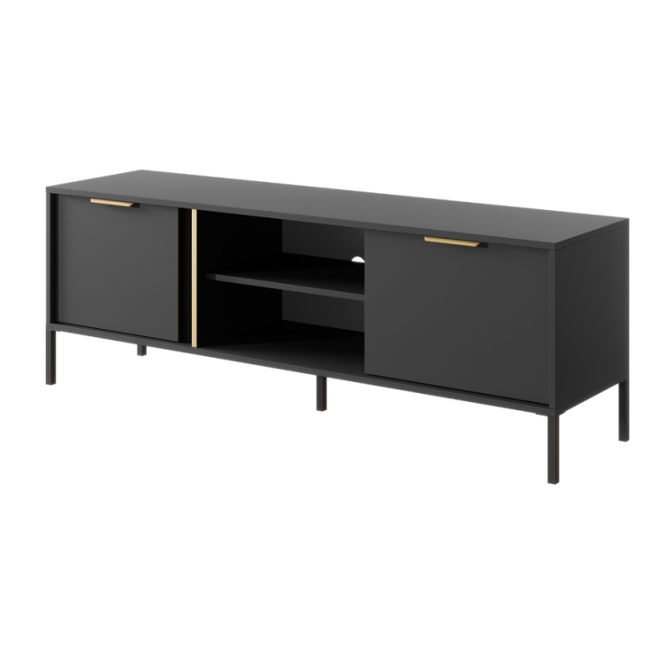 The Lars 153 TV Cabinet from Laski Meble combines clean lines with distinctive decorative details, creating a piece that organizes your media zone while enhancing your interior’s modern character. The anthracite body and fronts form a cohesive and contemporary base, while the gold-toned ABS edging and metal handles introduce a touch of elegant contrast.