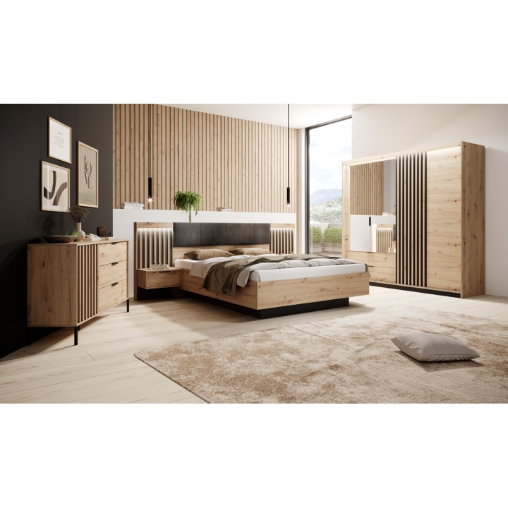 An additional advantage is the option to equip the wardrobe with LED lighting, which further highlights its design and adds a cozy atmosphere to the room. This solid and stylish piece is ideal for the bedroom, walk-in closet, or spacious hallway, bringing a pleasant mix of wood texture and modern detail into your home.