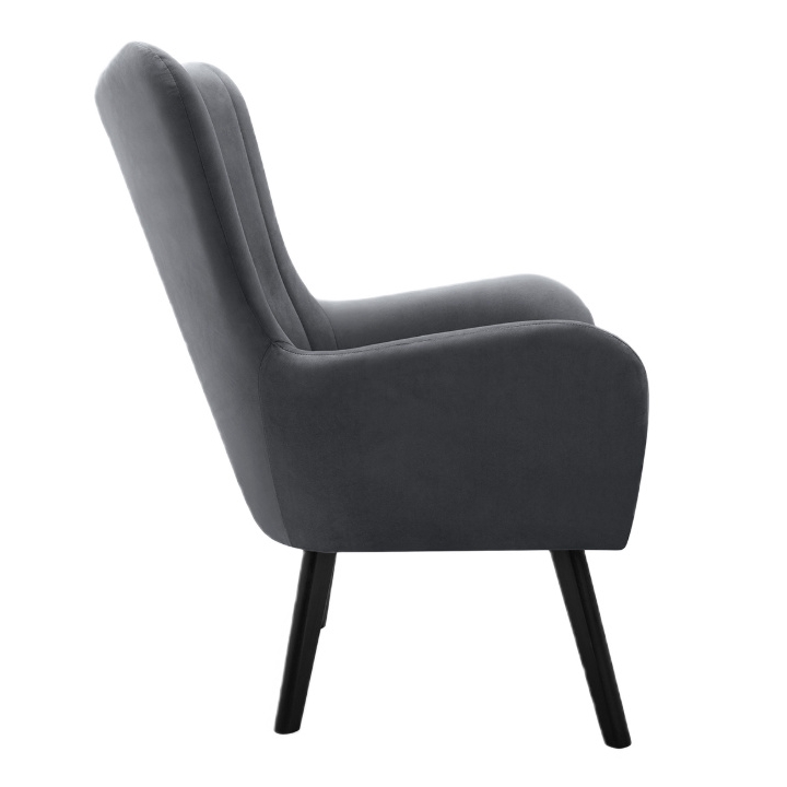 Its ergonomic form provides excellent comfort, while the vertical stitching and distinctive backrest lines give the armchair a unique character. The black wooden legs serve as a strong visual accent, highlighting the chair’s modern style. The polyurethane foam seat and backrest filling ensures softness, resilience, and long-lasting comfort.