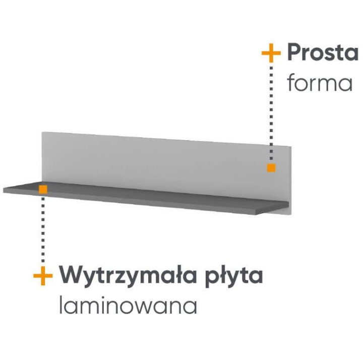 The Pok hanging shelf is the perfect solution for storing books and decorations in your room. The furniture measures 90 cm wide, 20 cm high and 22 cm deep. Thanks to its modern design, it makes efficient use of wall space, allowing free access to stored items. The furniture is made of durable laminated board, which guarantees its durability, and the durable ABS edging provides additional protection. Assembly is simple and will not cause any problems. Available in graphite, the shelf will fit perfectly into any interior design, adding a modern touch.