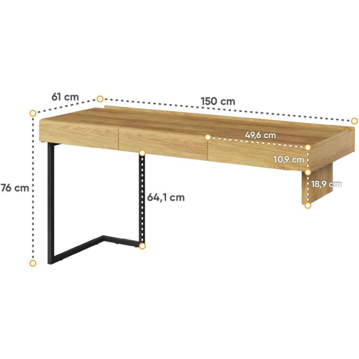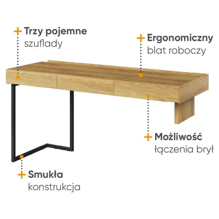 The Teen Flex youth desk, with drawers, is the ideal solution for a teenager's room. It offers an ergonomic work surface with a width of 150 cm for comfort when studying or working. Made of durable laminated board in natural hickory décor and raw steel, it adds a modern touch to the interior. The juxtaposition of colours adds elegance and versatility, allowing it to fit in with a variety of design styles. Two drawers optimise space, keeping the room tidy. Measuring 76 cm high and 61 cm deep, the desk can easily be combined with other pieces from the Teen Flex collection to create a cohesive arrangement. Assembly requires a bit of work, but the end result is sure to be satisfying. In addition, the desk can be fitted with a designer top with energising orange lighting (TF-05). The desk requires the support of another solid.