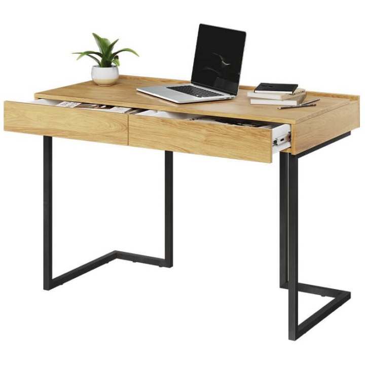 The Teen Flex youth desk, with drawers, is the ideal solution for a teenager's room. It offers an ergonomic work surface with a width of 110 cm for comfort when studying or working. Made of durable laminated board in natural hickory décor and raw steel, it gives the interior a modern feel. The juxtaposition of colours adds elegance and versatility, allowing it to fit in with a variety of design styles. Two drawers optimise space, keeping the room tidy. Measuring 76 cm high and 61 cm deep, the desk can easily be combined with other pieces from the Teen Flex collection to create a cohesive arrangement. Assembly requires a bit of work, but the end result is sure to be satisfying. In addition, the desk can be fitted with a designer top with energising orange lighting (TF-07).