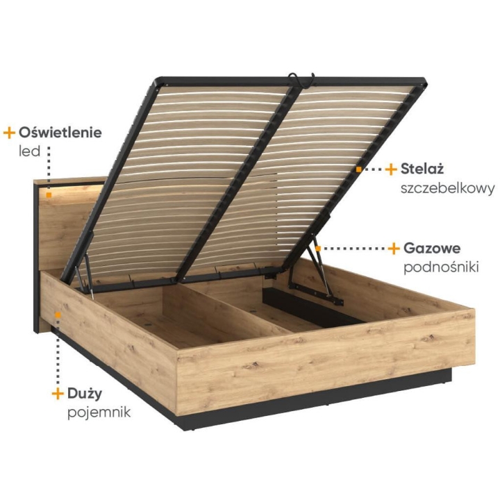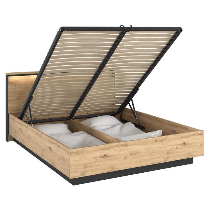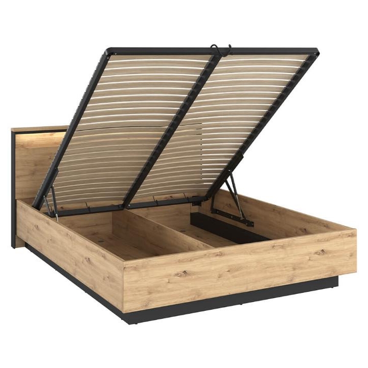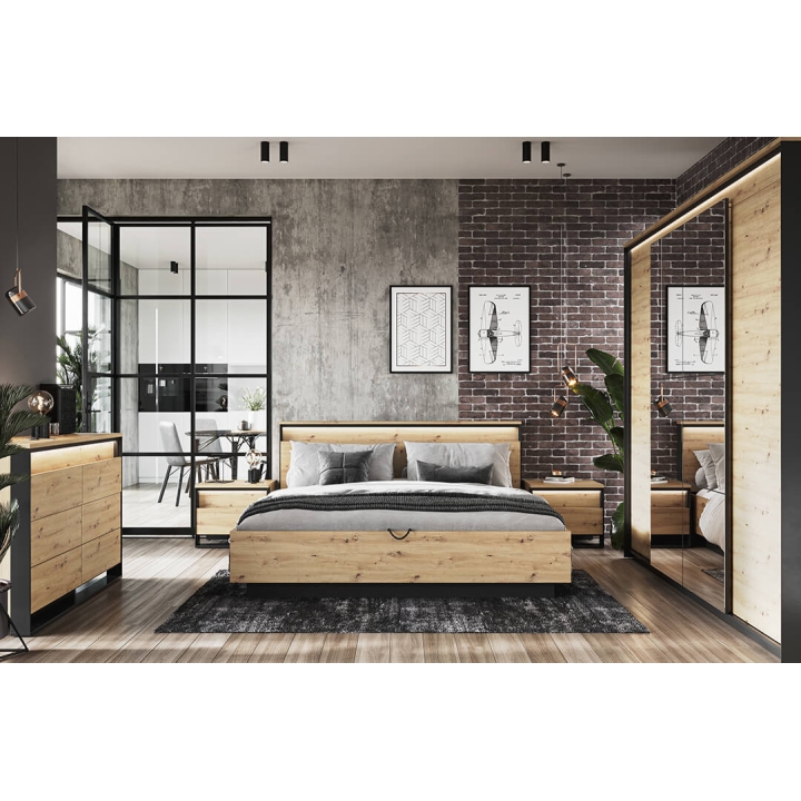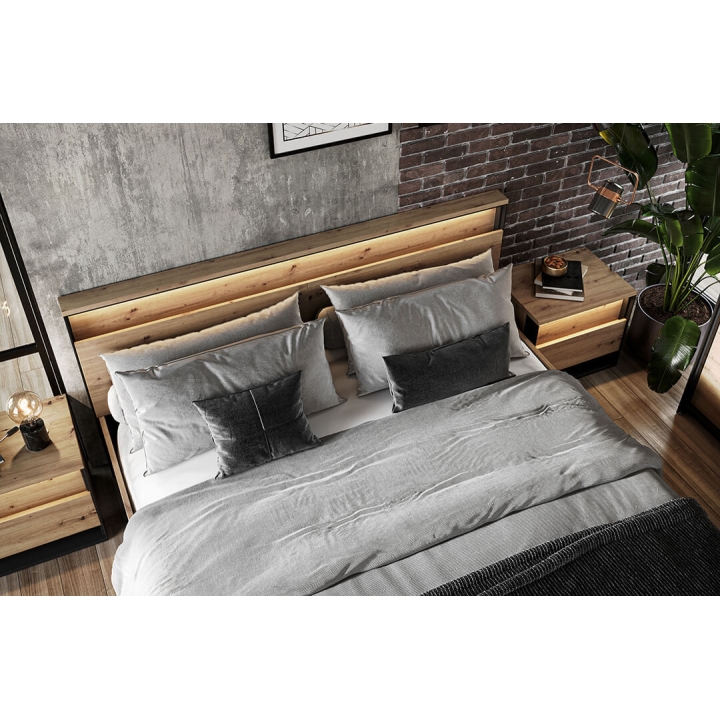 The modern Quant bed, in artisan oak/black, is the perfect addition to any bedroom, providing both comfort and style. Its impressive dimensions - 170 cm wide, 95 cm high and 214 cm deep - make it the centrepiece of any room. Assembling the bed requires minimal effort thanks to its simple design. The collection's modern-inspired style adds elegance and character to the interior. With the loft-style bed, the bedroom space becomes more open and spacious, which is currently one of the latest trends in interior design. Whatever your lifestyle, this bed is sure to fit your needs and taste.