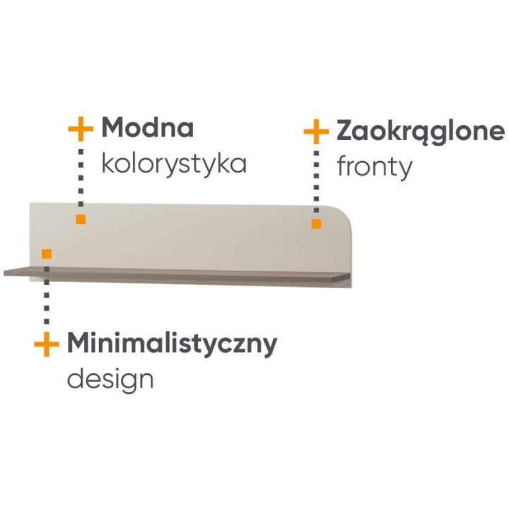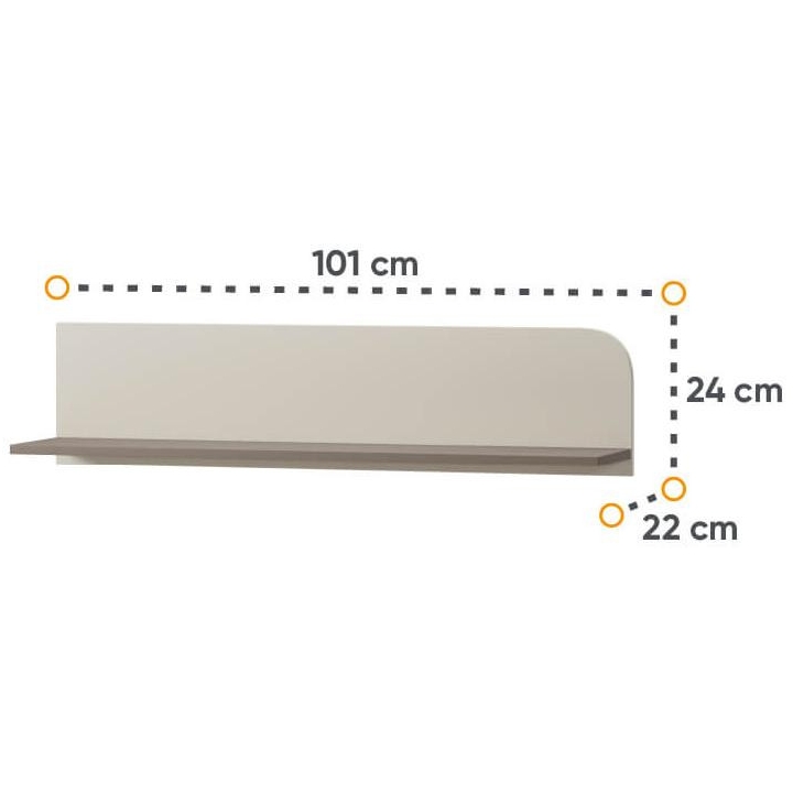 The shelf from the Harmony collection is a timeless piece of furniture made of durable laminated board in cashmere and truffle decors, which fits perfectly into modern and classic interiors. Its dimensions - 101 cm wide, 24 cm high, 22 cm deep - allow you to display items that are important to you, making it extremely practical. Assembly requires little effort and the end result is satisfying. The shelf goes well with other pieces from the Harmony collection, especially with the desk, creating a coherent and functional space.