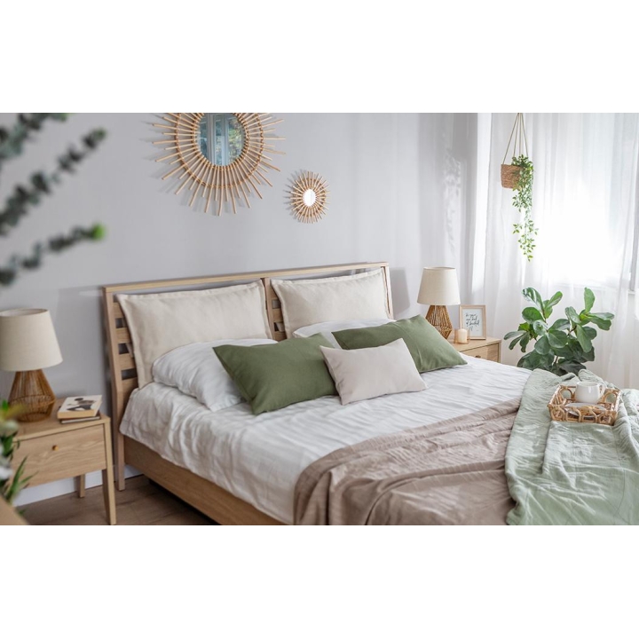 The features of the Cozy headrests are the fabric in warm beige, the perfect match to the Cozy bed and the decorative piping.