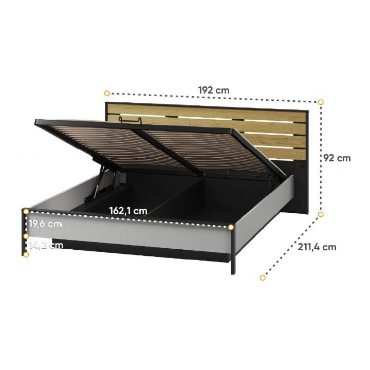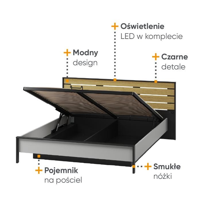 The Gris bed is the perfect bedroom solution with modern design and functionality. Ideal for a 160 cm wide mattress, it comes with a rung frame to ensure adequate support. Measuring 192 cm wide, 92 cm high and 211 cm deep, the furniture has atmospheric LED lighting to add charm and create a pleasant atmosphere. The GS-02 bed is a guarantee of quality sleep and regeneration of the body after an active day. Thanks to its interesting design and harmonious colour scheme, it blends perfectly with modern interior design. Investing in a comfortable bed is the key to better well-being and exceptional bedroom aesthetics. Its delightful design and functionality make it not only a place to sleep, but also the centre of attention in the room's design.