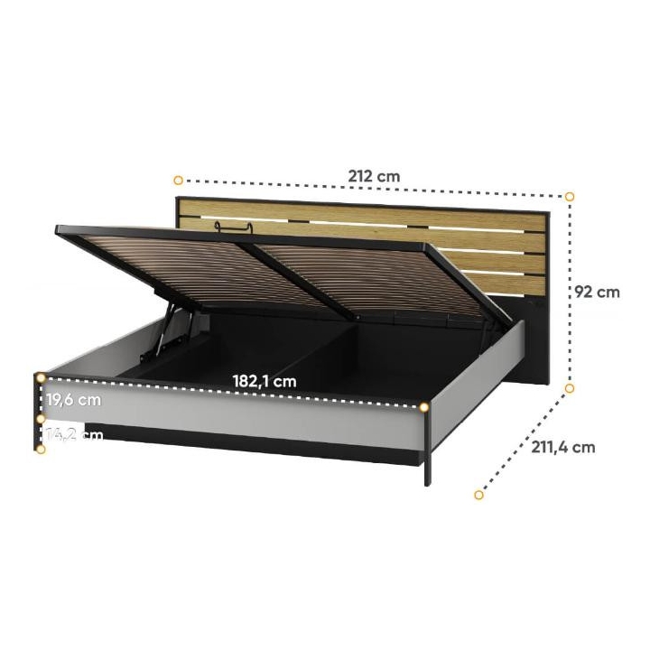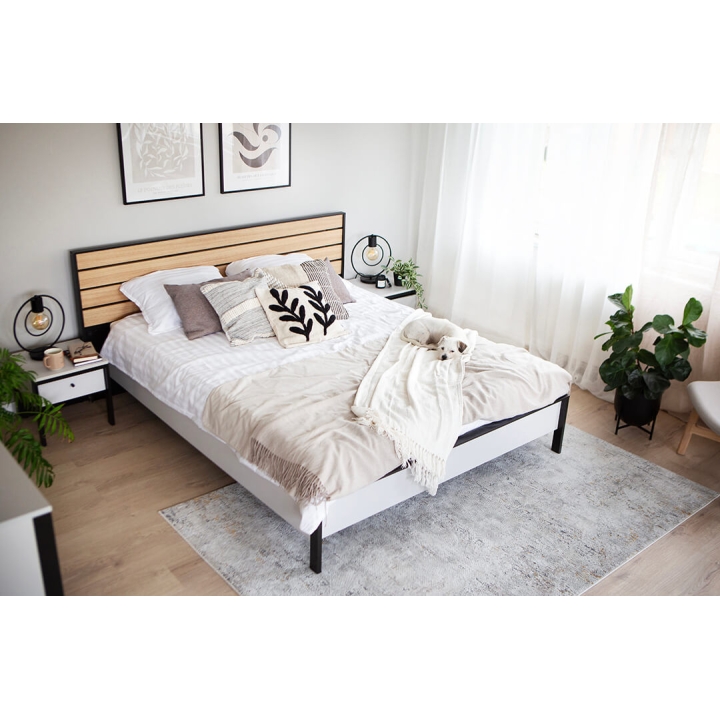 The Gris bed is the perfect bedroom solution with modern design and functionality. Ideal for a 180 cm wide mattress, it comes with a rung frame to ensure adequate support. Measuring 212 cm wide, 92 cm high and 211 cm deep, the furniture has atmospheric LED lighting to add charm and create a pleasant atmosphere. The GS-02 bed is a guarantee of quality sleep and regeneration of the body after an active day. Thanks to its interesting design and harmonious colour scheme, it blends perfectly with modern interior design. Investing in a comfortable bed is the key to better well-being and exceptional bedroom aesthetics. Its delightful design and functionality make it not only a place to sleep, but also the centre of attention in the room's design.