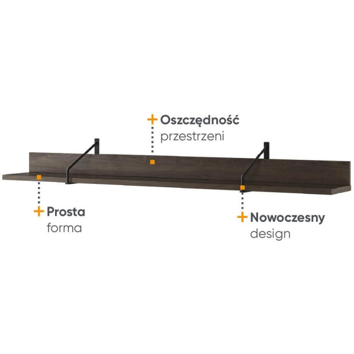 The Piemonte hanging shelf is a practical solution for the living room. It allows efficient use of wall space for storage, and the vertical crossbars make it easy to organise books or decorations. It blends perfectly with other furniture from the Piemonte collection, creating a cohesive arrangement with the cabinets. The use of the colours portland ash and black gives the shelf a timeless character, matching different interiors. Made from durable laminated board, the shelf is not only aesthetically pleasing, but also durable and easy to clean. The shelf requires simple assembly, but thanks to its simplicity, the shelf will be ready for use in no time.