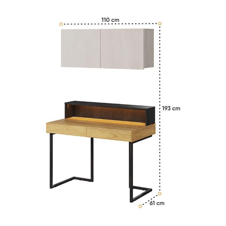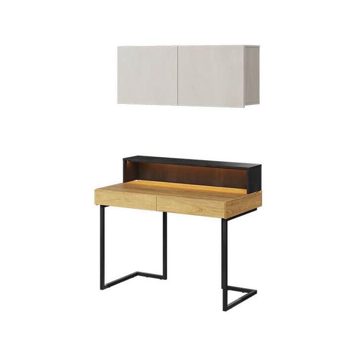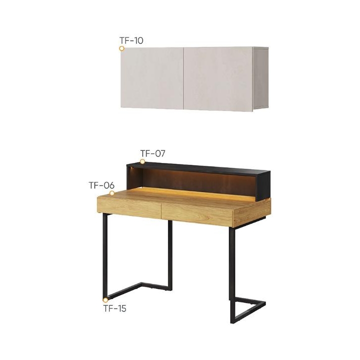 The TEEN FLEX - SET-12B set is a comprehensive solution for a modern youth room, offering not only functionality but also aesthetic design. The furniture is made of durable laminated board in the elegant colours of silk flou, raw steel and natural hickory, and looks exceptionally modern. The set includes a wall unit TF-10, a desk TF-06 together with an extension TF-07. Their solid construction includes 2 drawers and 2 doors, which provides plenty of space for storing clothes, books or other things. Measuring 110 cm wide, 193 cm high and 61 cm deep, the furniture fits perfectly in a youth room, providing enough space for organisation. Assembly requires a bit of work, but the end result is satisfying. In addition, the cabinet includes 5 shelves, which increase its functionality, allowing for efficient space management. This comprehensive set will make furnishing a designer youth room easy and enjoyable.