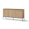 Made of high-quality materials, the chest of drawers guarantees durability and stability. The linear oak in which it is finished gives it a subtle, natural look. The furniture is also easy to assemble and the clip-on can hinges and push-open slides add to the comfort of use.