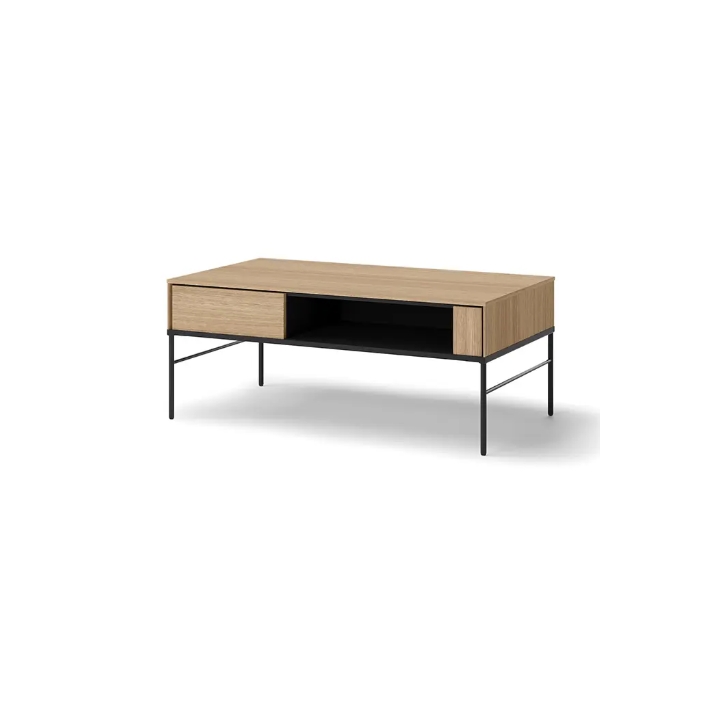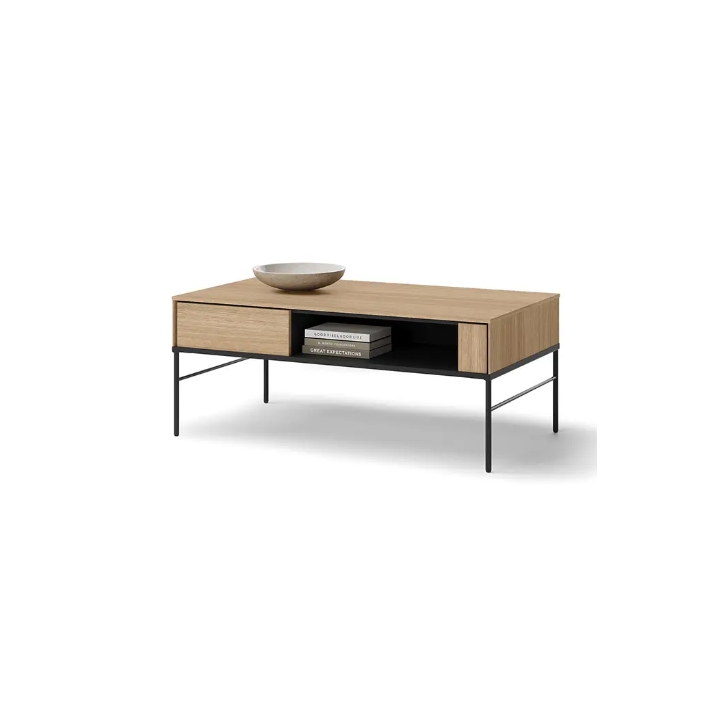 Its spacious surface measuring 110 cm wide, 60 cm deep and 45 cm high makes the furniture comfortable for everyday use. Perfect as a coffee table, a place for books, small items or decorations, it has an alcove that further allows you to organise your space.