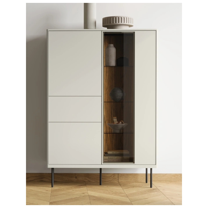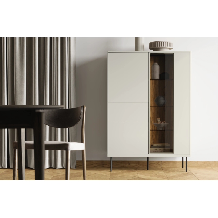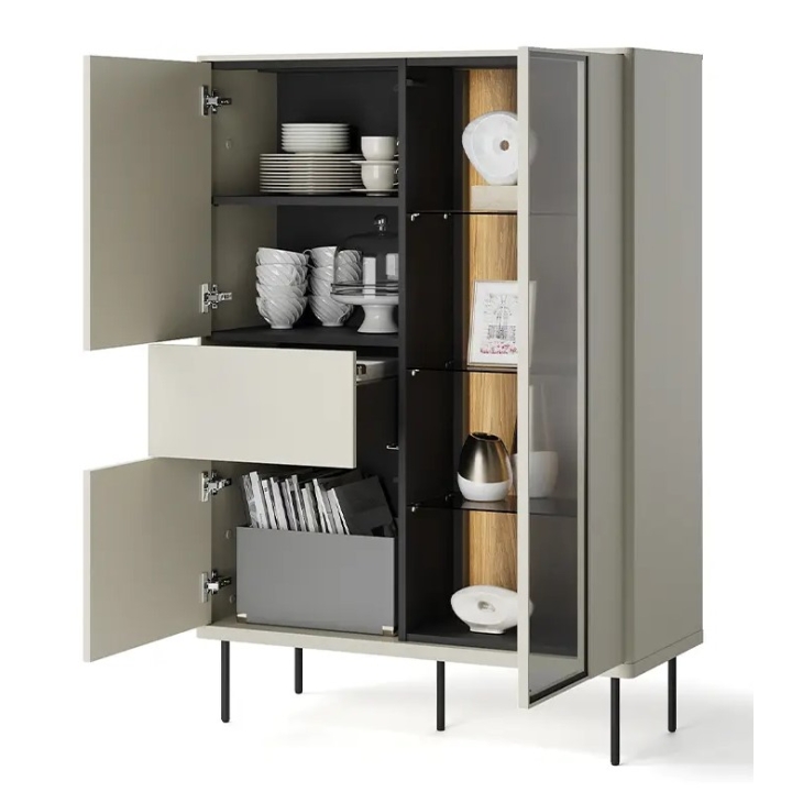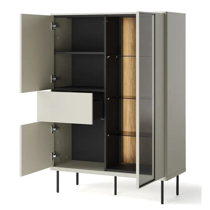 The Epiro EP-02 showcase from the Lenartcollection is a unique, timeless design which, thanks to subtle LED lighting, emphasises the decorative qualities of the items stored in it. The partly glazed door of the furniture allows you to display your favourite decorations, and the interior in natural wood and black perfectly contrasts with the rest of the furniture. The eye-catching design of the display cabinet creates a cosy atmosphere in any room.
