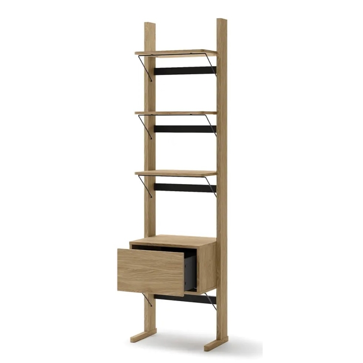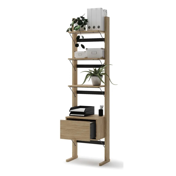 The Ollie OL-02 book case by Lenart is a unique piece of furniture with a width of 52 cm, a height of 193 cm and a depth of 40 cm, ideal for storing various items. It has 3 shelves and 1 drawer, allowing you to organise your space in an organised way. It weighs 19 kg for stability and the push-open slide in the drawer makes it easy to open.