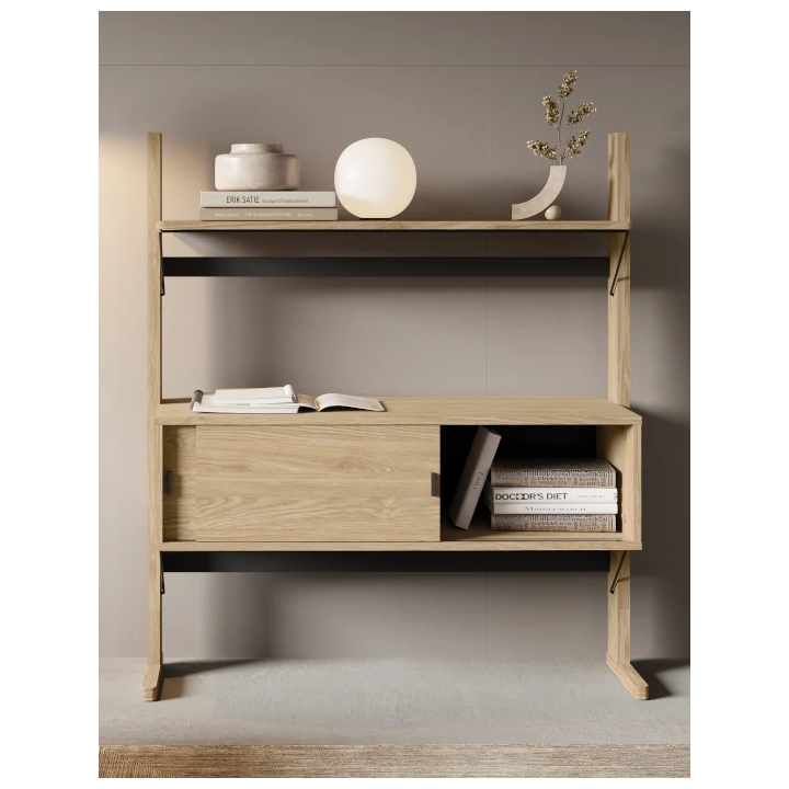 Thanks to its compact dimensions, the 108 cm wide, 121 cm high and 40 cm deep bookcase is suitable for small spaces. Its sleek form allows it to fit into a variety of arrangements, whether it is placed under a window, next to a sofa or in a bedroom. It is a piece of furniture that can easily fit into smaller rooms where space is at a premium.