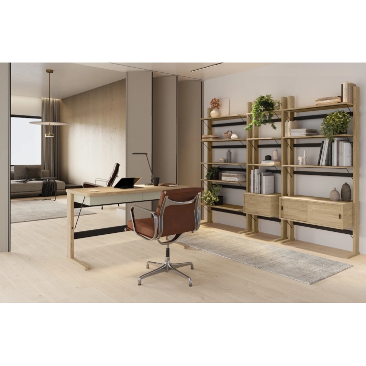 The Ollie OL-03 bookcase has dark PVC handles and feet in the form of glides, which make it easy to move the furniture around. Its timeless design makes it suitable for both the office and other living spaces. Its versatility allows it to fit in with different styles and user needs.