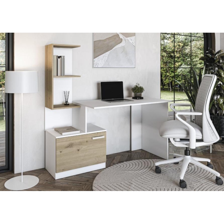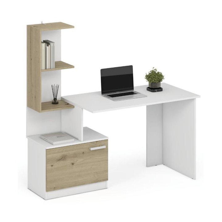 The Miso desk with bookcase by Halmar is a comprehensive solution for people working from home remotely, offering not only functionality but also an aesthetic look. The furniture is made of durable laminated board in an elegant colour scheme of white with artisan oak or graphite and artisan oak and graphite, and looks exceptionally modern. The set includes a desk, a cabinet and shelves. Their sturdy construction includes a single door , which provides plenty of storage space for books, documents or other items.