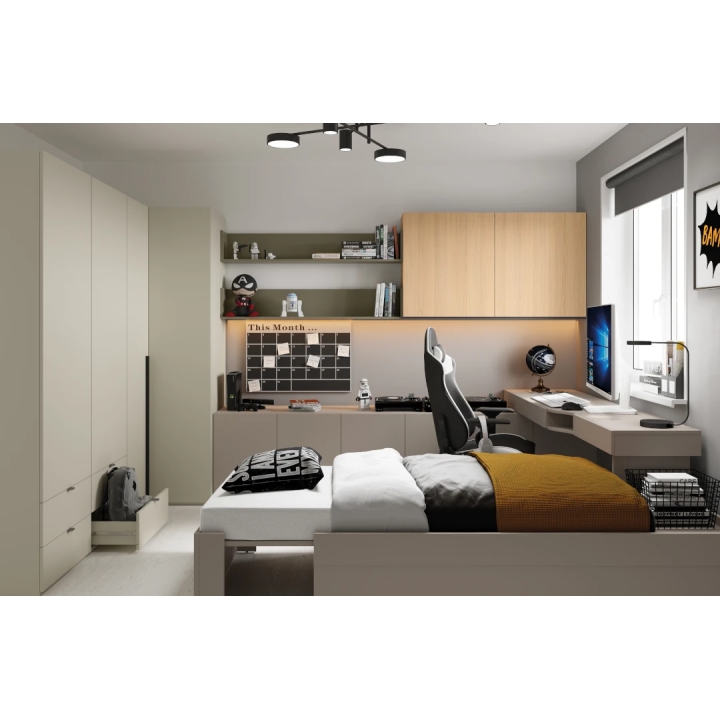 This model responds to the needs of young people who need a tidy place to study and store educational materials. WO-10 from Lenart provides a clear division of space - it allows textbooks and other utensils to be conveniently placed, leaving the surface of the tabletop completely free. This form of wall arrangement promotes concentration and facilitates daily organisation.