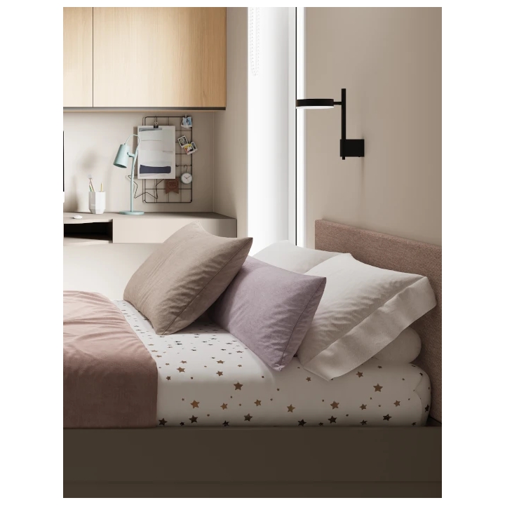 This element can play both a decorative and functional role - it works well as a backrest over the bed or a seat, ensuring comfort while resting. The pink shade of the GEMMA 13 fabric brings lightness and youthful energy to the interior, making the space more personal. Its proportions have been chosen so as not to disturb the composition of the entire room.