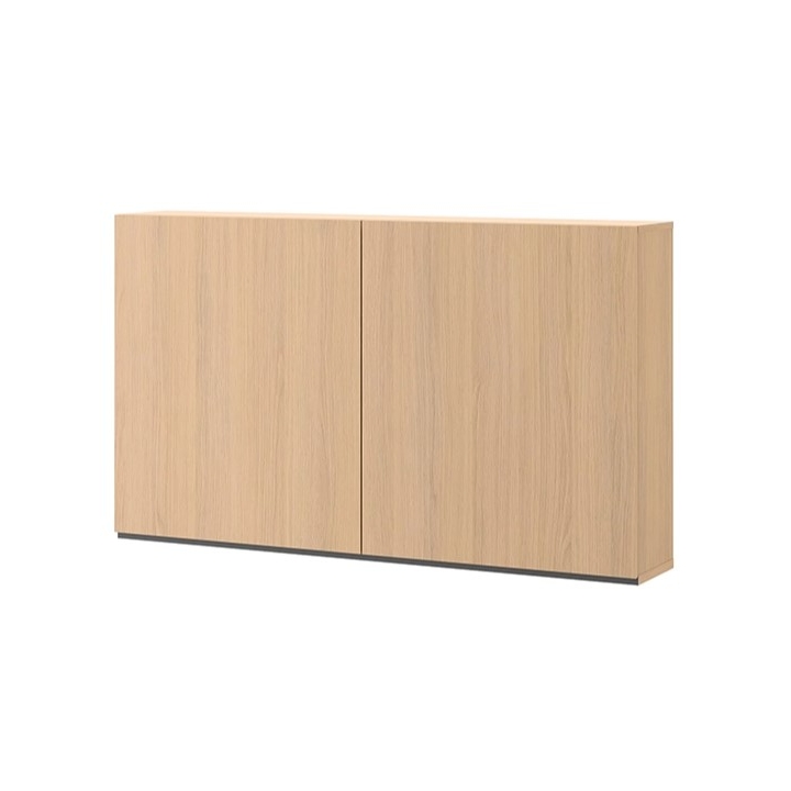 Measuring 141 cm wide, 82 cm high and 25 cm deep, the unit is made from 16 and 22 mm thick laminated chipboard, with a solid ABS edge finish (0.45 mm and 1.00 mm). It has a weight of 35 kg, which demonstrates the robustness of the construction and the durability of the materials. The push-open system dispenses with classic handles, which emphasises its contemporary character.