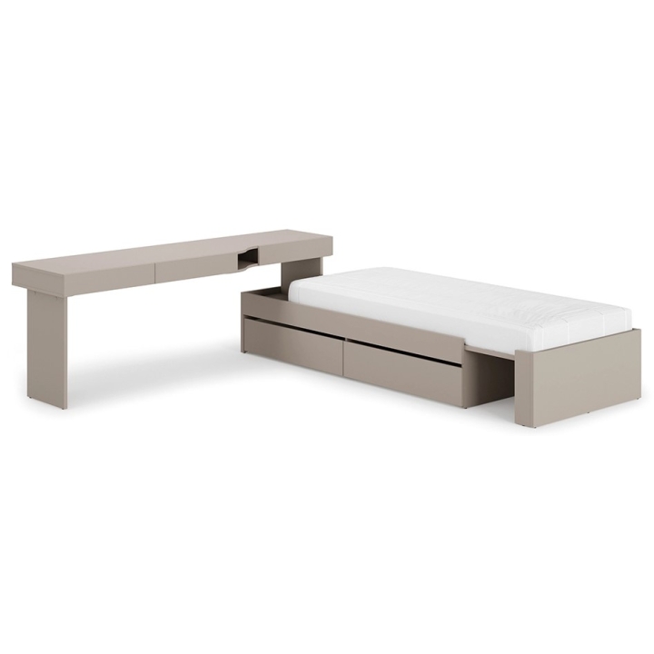 The SET-WOS3L furniture set is a solution designed for young people who need a well-organised space in a room with limited space. The 291 cm wide, 79 cm high and 206 cm deep structure combines a bed and a desk in one compact form. The overall design is in the shade clay grey, which fits perfectly with current interior trends for younger users.