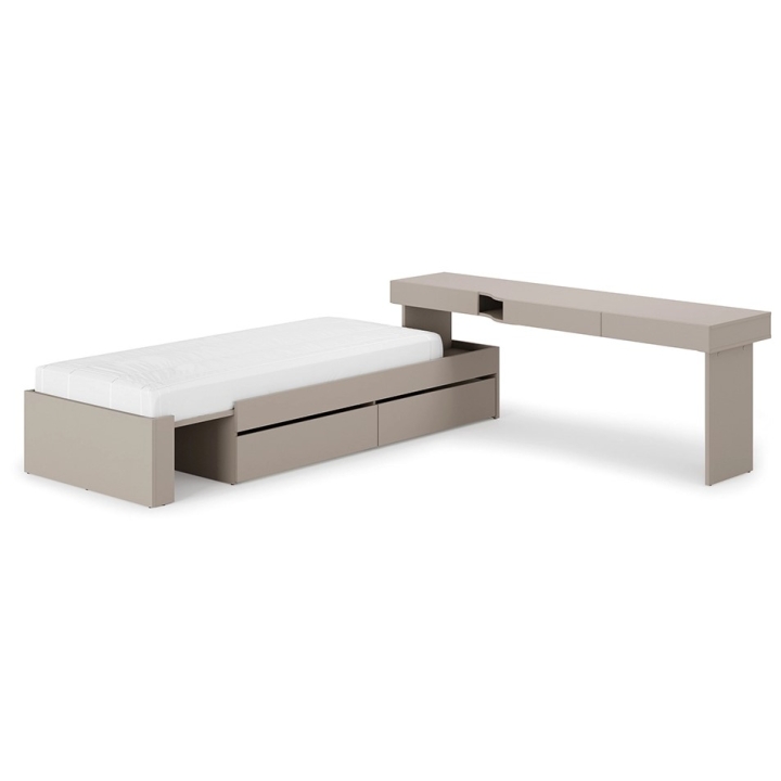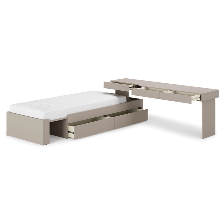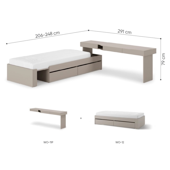 The SET-WOS3P furniture set is a solution designed for young people who need a well-organised space in a room with limited space. The 291 cm wide, 79 cm high and 206 cm deep structure combines a bed and a desk in one compact form. The overall design is in the shade clay grey, which fits perfectly with current interior trends for younger users.