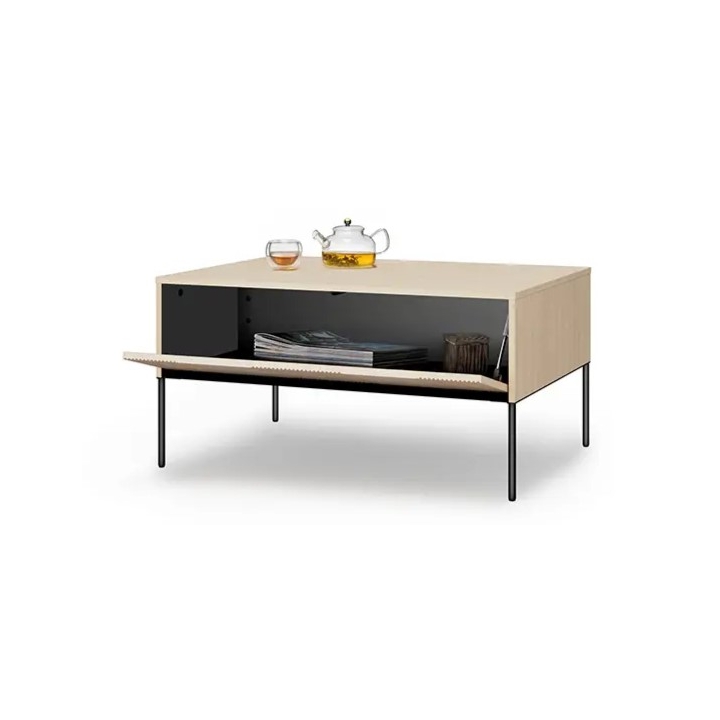 The FW-06 Lenart coffee table is part of the FLOW collection, designed for interiors with a contemporary character. The model features a solid construction supported by high steel legs, which provide stable support for the entire structure. The furniture is intended for self-assembly and is delivered in separate components.