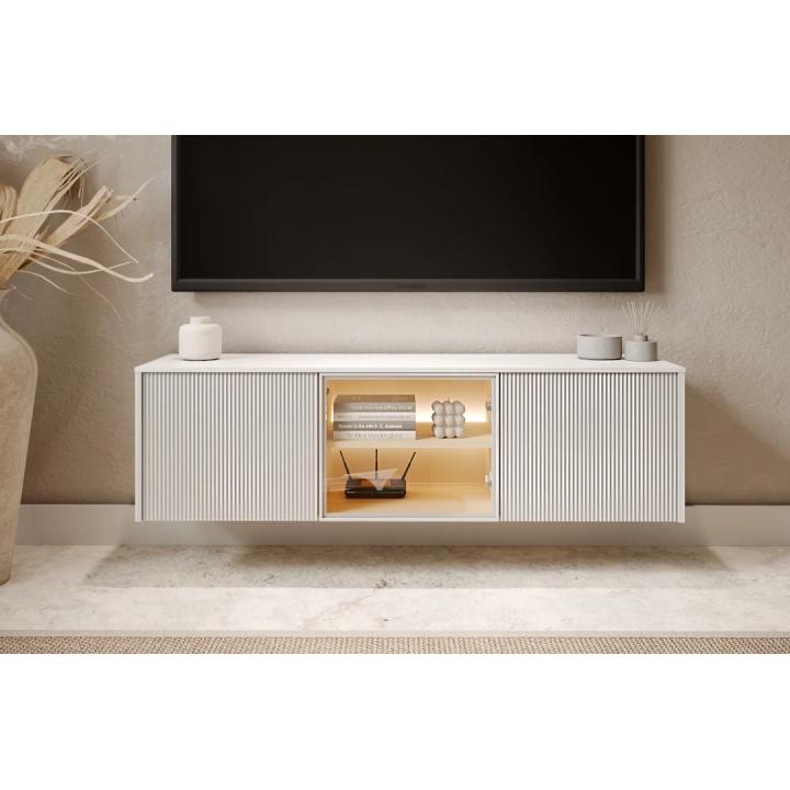 Thanks to its floating design and neutral colour palette, the Liba LB-06B cabinet is a modern and space-saving solution for contemporary living rooms.