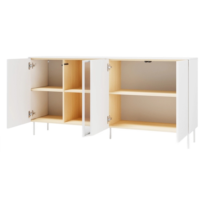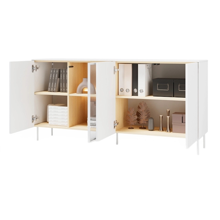 Set on high legs, the sideboard appears lighter and allows easy cleaning underneath. It is a practical and modern storage solution for everyday use.