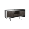 The RTV cabinet by Lissy from the Elegance collection will perfectly complement the interior of your living room. The unique look of the furniture will delight any lover of industrial arrangements. The cabinet is made of solid wood and is available in three colour variants. The fronts of the furniture are also made of wood in a choice of three different colours, and decorated with characteristic herringbone engravings. A noteworthy element is the frame available in two colours, gold or silver, surrounding the front of the furniture. The cabinet is equipped with an open shelf in the front part of the furniture to facilitate the display of additional RTV equipment, and two closed ones on both sides. In addition, the cabinet has a capacious drawer ideal for storing all sorts of gadgets necessary for evening film screenings. The structure is placed on high metal legs significantly facilitating access under the furniture.