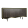 The chest of drawers by Lissy from the Elegance collection will refresh the look of your living room. The furniture was created with industrial styles in mind. Solid wood was used to make the body and fronts of the furniture. In addition, the fronts have been decorated with tasteful herringbone grooves, which gives the furniture a unique class. The chest of drawers has a decorative frame, the colour of which, depending on your preference, can be gold or silver. The chest of drawers has several colour versions, which are, onyx oak, natural oak and chestnut. In the central part of the furniture you will find as many as 8 closed shelves, which will help you, among other things, to comprehensively organise your sizeable collection of clothes. The whole is placed on black high metal legs with gold or silver elements.