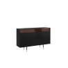The Lissy brandchest of drawers from the ARTE collection will be perfect for modern interiors. The colour combination of glossy ebony together with semi-matte black fronts featuring distinctive slanted fluted applications will turn an ordinary living room into a representative part of the house. The chest of drawers has three capacious lockable shelves that provide space for storing films magazines or collections of family photos. The upper part of the furniture has two drawers ideal for storing all kinds of documents. The carcass is made of scratch- and damage-resistant furniture board. The fronts are made of MDF and fitted with a "push to open" opening system.