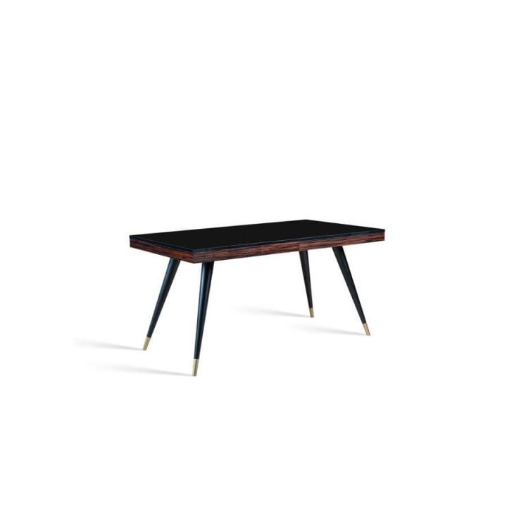 Thefolding table by Lissy from the ARTE collection will become the centrepiece of your dining room. The unusual design of the table will delight every visitor to your home. The table top is made of scratch-resistant furniture board in a beautiful black colour with a semi-matt finish. The side panel concealing the runners that enable the table to be unfolded is made in ebony with a glossy finish. The high wooden legs in the colour of the table top provide extraordinary stability to the whole. Once the table is unfolded, you will be able to seat up to 12 people at the table, so you won't be limited when inviting family and friends over for important celebrations. To complete your dining room decor, you can also purchase a display cabinet from the same collection.