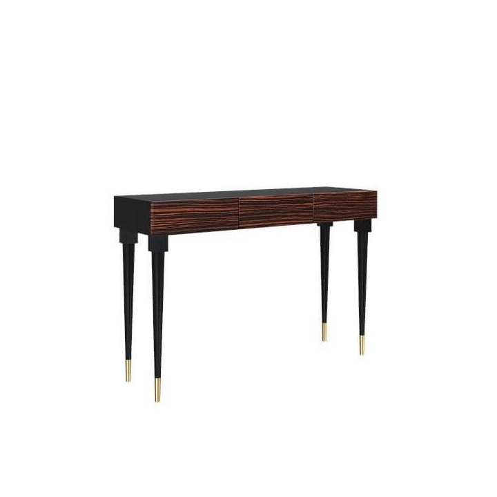 Theconsole by Lissy from the ARTE collection will become the perfect addition to your living room. The furniture was made with modern styles in mind. The top of the console was created from scratch-resistant furniture board in a beautiful black colour with a semi-matte finish. The fronts of the furniture were made of MDF in glossy ebony. The console has 3 capacious drawers, perfect for storing the ubiquitous trinkets that clutter up the flat and spoil the impression of a pristine interior. The piece of furniture is placed on high, slender wooden legs giving lightness to the structure.