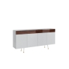 The Lissy brandchest of drawers from the ARTE collection will be perfect for living rooms with modern arrangements. The furniture body is made of scratch and damage resistant furniture board. The fronts of the furniture were made of MDF. The colour combination of white semi-matte and ebony glossy is reminiscent of exclusive hotel arrangements, so you can feel this way in your own home. The upper part of the chest is equipped with two capacious drawers, which are very useful for storing all kinds of trinkets omnipresent in every home. Underneath, you will find four lockable shelves perfect for fresh smelling bed linen and towels. An innovative solution that was introduced during the design of the furniture is the handle-free "push to open" system for opening the cabinets. The structure was placed on high metal legs ensuring adequate air circulation in rooms with underfloor heating.