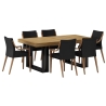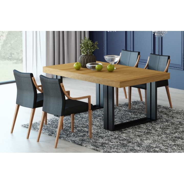 The presented product has a top in oak veneer, while the pedestal appears in black The size of the top is 180x100 cm, it is extendable to 380 cm (thanks to four inserts - 50 cm each).